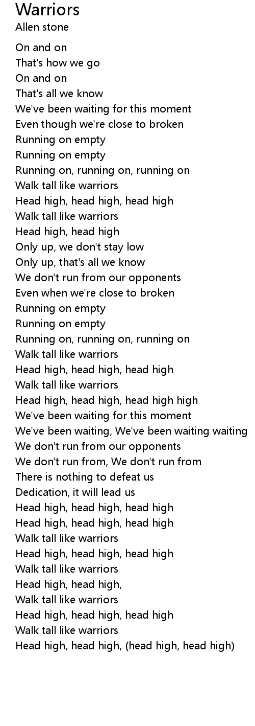 My heat carriers and all my buffalo yo. I was born a warrior glorious. Sep 02 2021 Sep 02 2021 Warriors Song Lyrics.